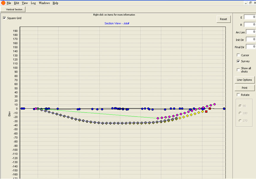 d.终端数据输出齐套:系统软件中文界面,实时测量、采集钻具数据和长度数据,实时计算、处理出钻孔轨迹的二维剖面图、平面图和钻孔轨迹数据表等文件。